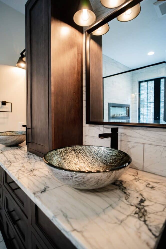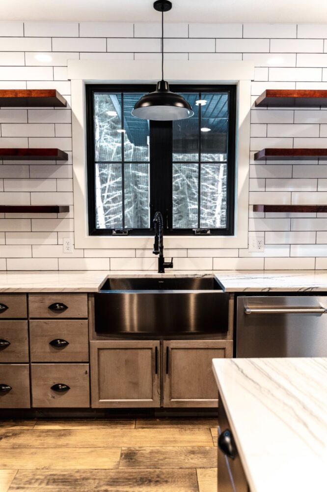 This home sits amidst a beautiful old tree farm with exquisite pine trees as the backdrop. So many nice details in this home from the wood accent ceiling in the living room, the stunning fireplace in the primary bath and the custom kitchen that is just stunning.
